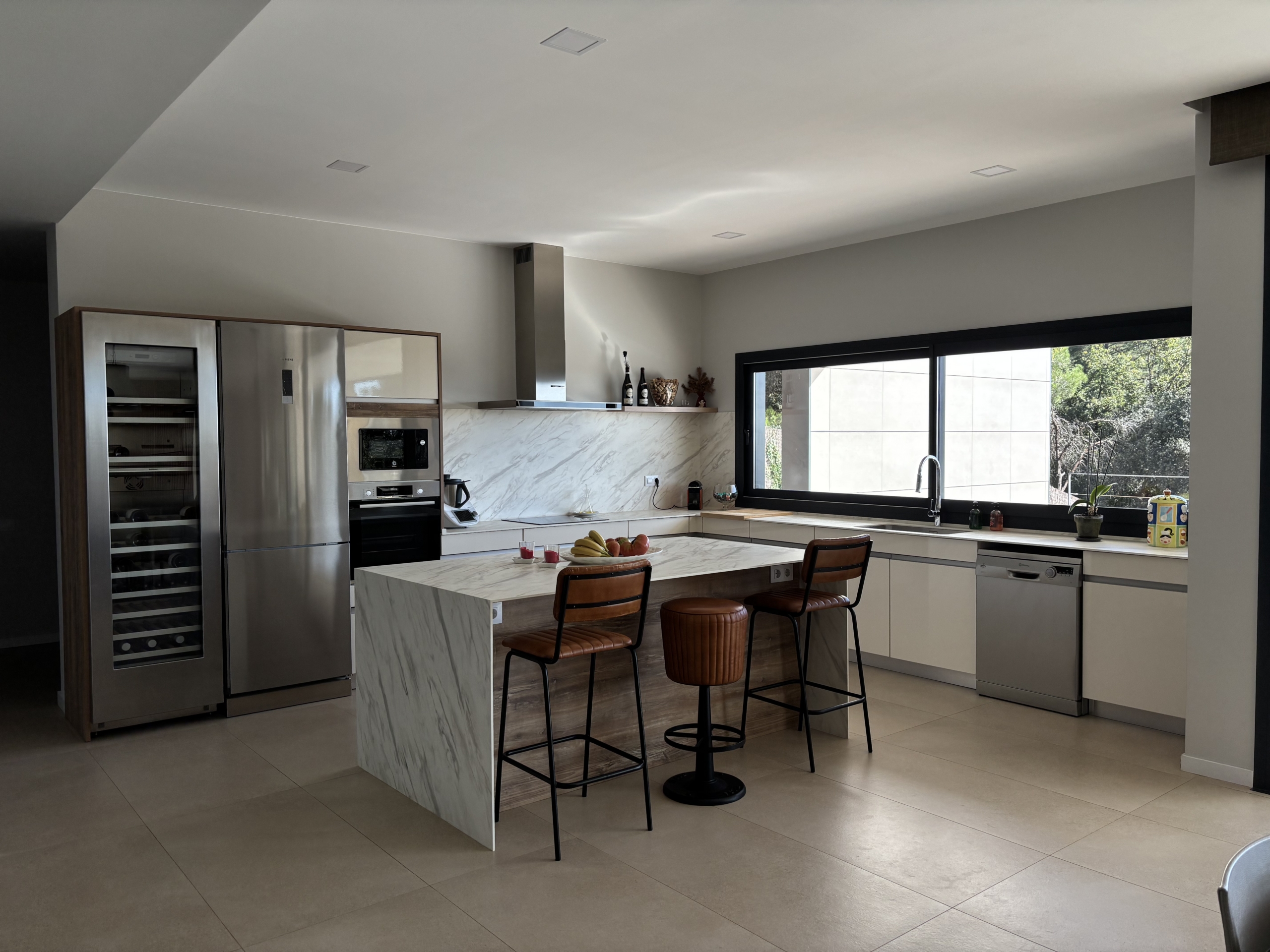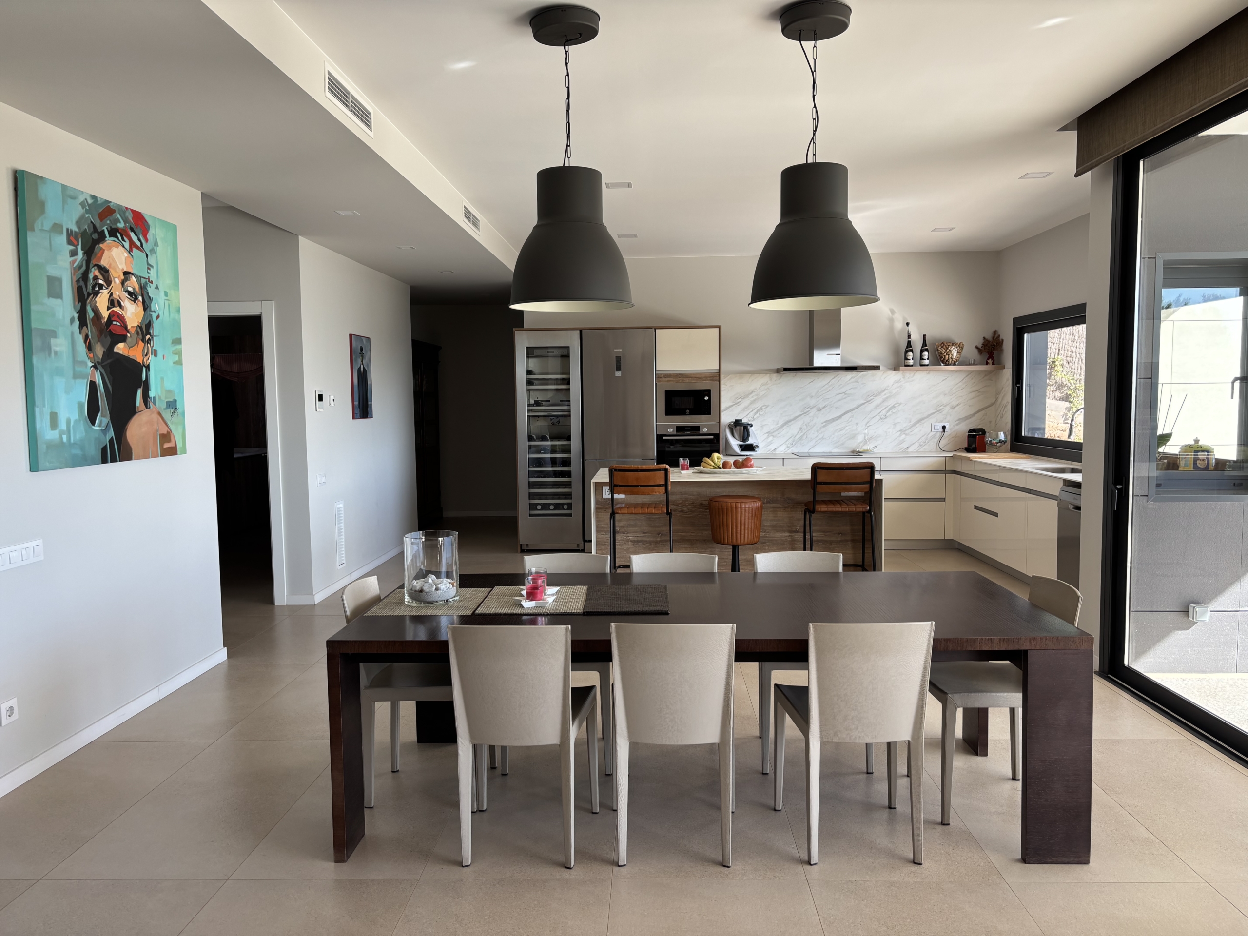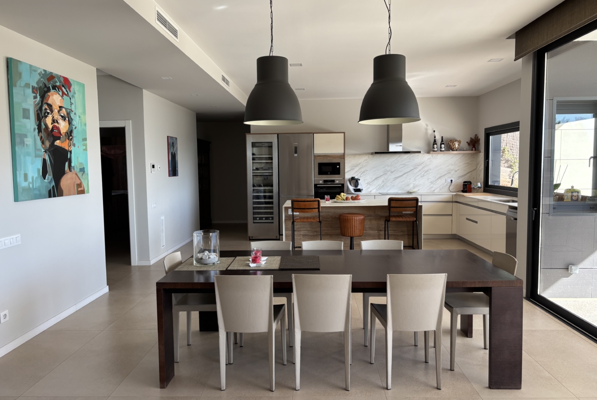 La zona de día ofrece un amplio salón-comedor con cocina abierta, diseñada con